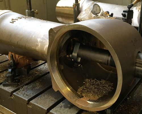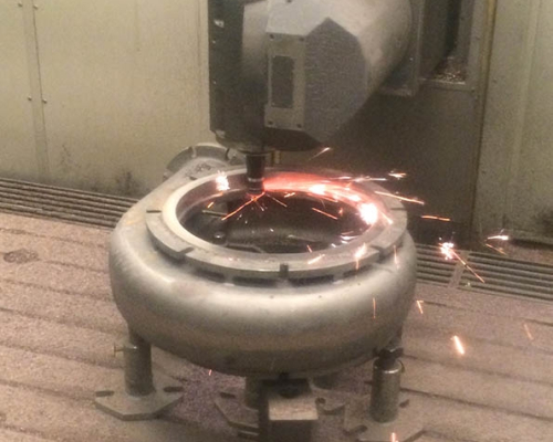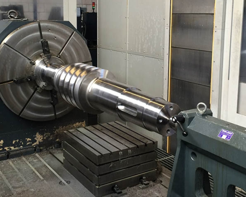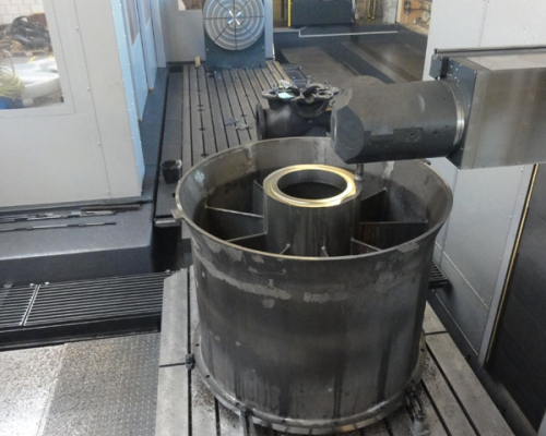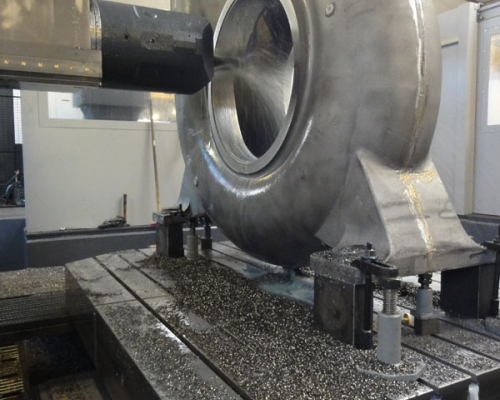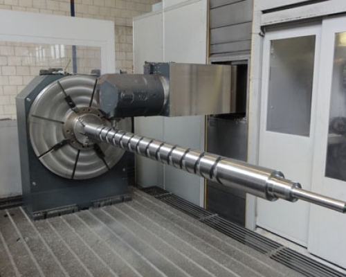 Wij bewerken (draaien, frezen en vertanden) producten tot ongeveer 5000 mm rond en 10 meter lang. Dit kan gietwerk zijn uit onze gieterij, maar ook andere producten die we compleet zelf maken of die door klanten worden aangeleverd. In het geval van lange producten als assen en tandheugels, hebben we mogelijkheden voor het bewerken van producten tot een lengte van ongeveer 10 meter.